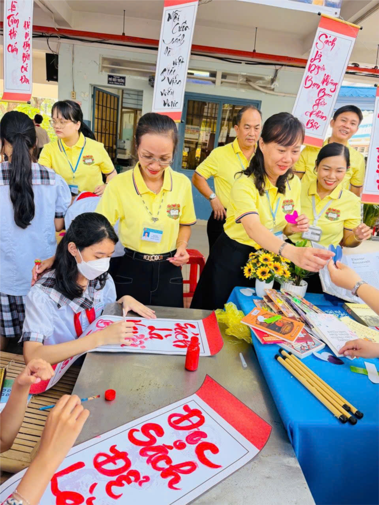 Sáng nay ngày 13/4/2026, nhà trường tổ chức “Ngày hội đọc sách” vào giờ sinh hoạt đầu tuần dưới cờ. Đây là hoạt động văn hóa ý nghĩa nhằm tôn vinh giá trị sách, khơi dậy niềm đam mê đọc và phát triển văn hóa đọc. Các Thầy Cô của các tổ chuyên môn đã trưng bày sách theo từng gian hàng của tổ, tổ Ngữ Văn có tiết mục hoạt cảnh kể chuyện theo sách, quyên góp sách, … Ngày hội diễn ra trong không khí vui tươi và đầy hứng thú.